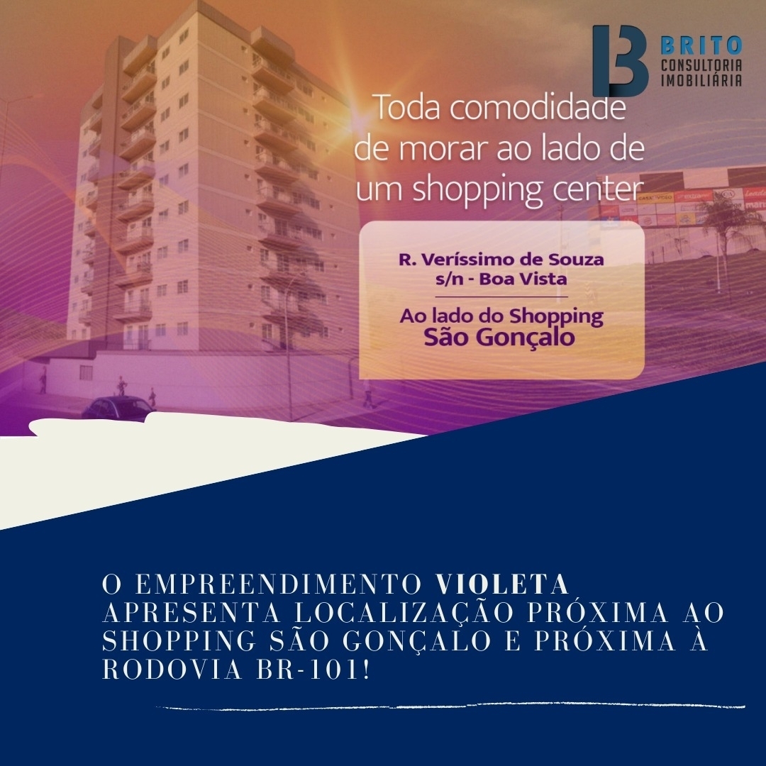 O Residencial Violeta apresenta uma localização estratégica no bairro Boa Vista, na Rua Veríssimo de Souza e próxima ao São Gonçalo Shopping onde encontrará academia, restaurantes, conveniências e serviços.